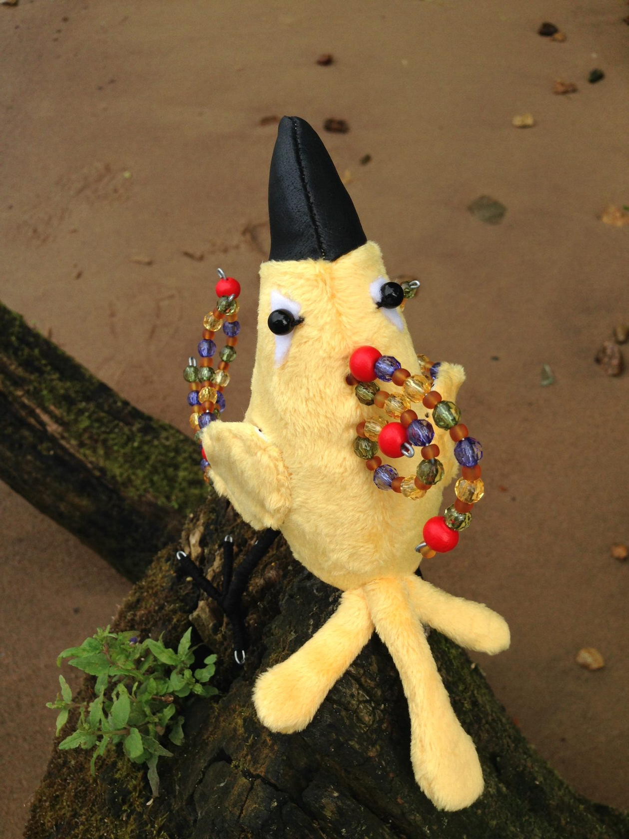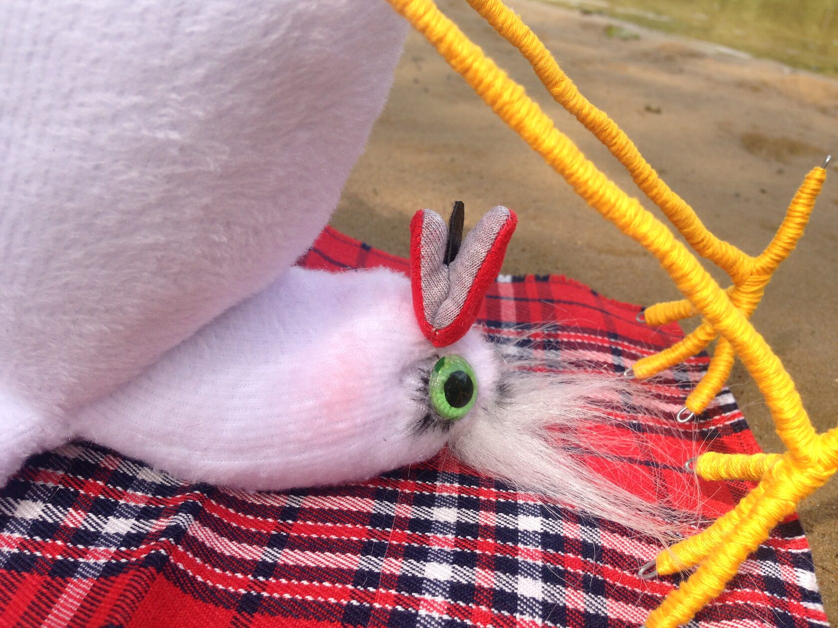 Плюш, холлофайбер, проволока, нитки, бусины.