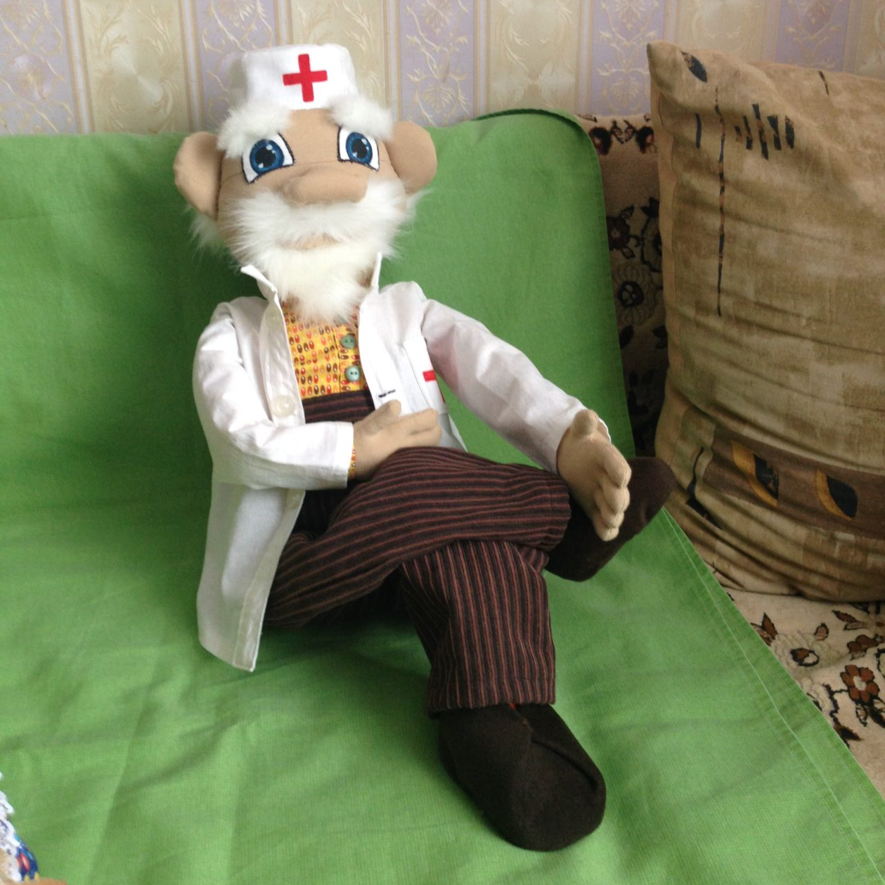 Бязь, искусственный мех, ситец, краски по ткани, поролон, клей, деревянные заготовки.Размер: высота 82 см